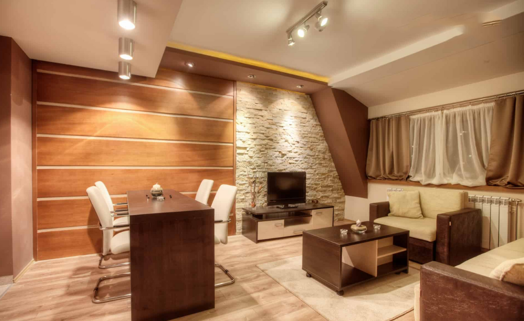Màu sắc của tường và nội thất: sử dụng loại đèn có độ sáng lớn hoặc sử dụng nhiều đèn hơn nếu không gian có tường và nội thất tối màu hay có chất liệu gỗ.