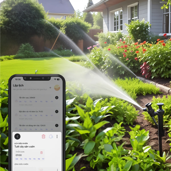 Điều khiển các thiết bị điện: Máy quạt, hệ thống tưới cây, ấm điện Tự động hóa, lập lịch điều khiển theo thời gian cài đặt, thiết lập trước