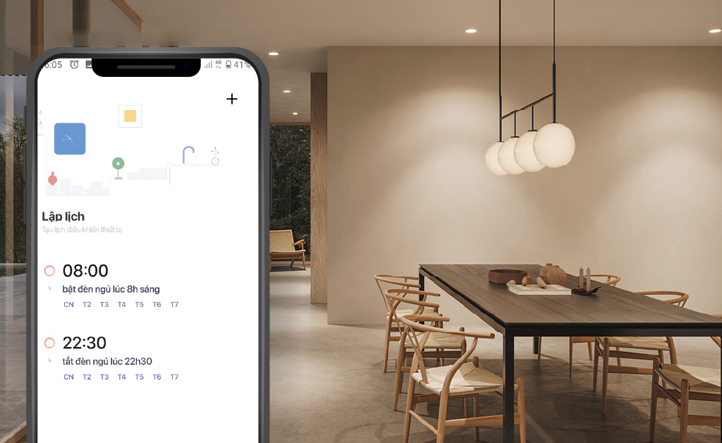 Tạo ngữ cảnh “Báo thức” 6 giờ sáng rèm tự động mở hoặc ánh sáng đèn tăng dần.